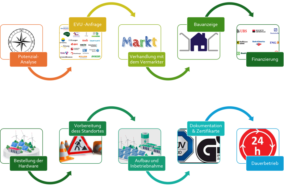 - Auf Wunsch Anfrage bei drei bis vier Vermarktern, um dem Kunden ein Angebot vorzulegen. Der Kunde entscheidet dann über seinen Vermarktungspartner.